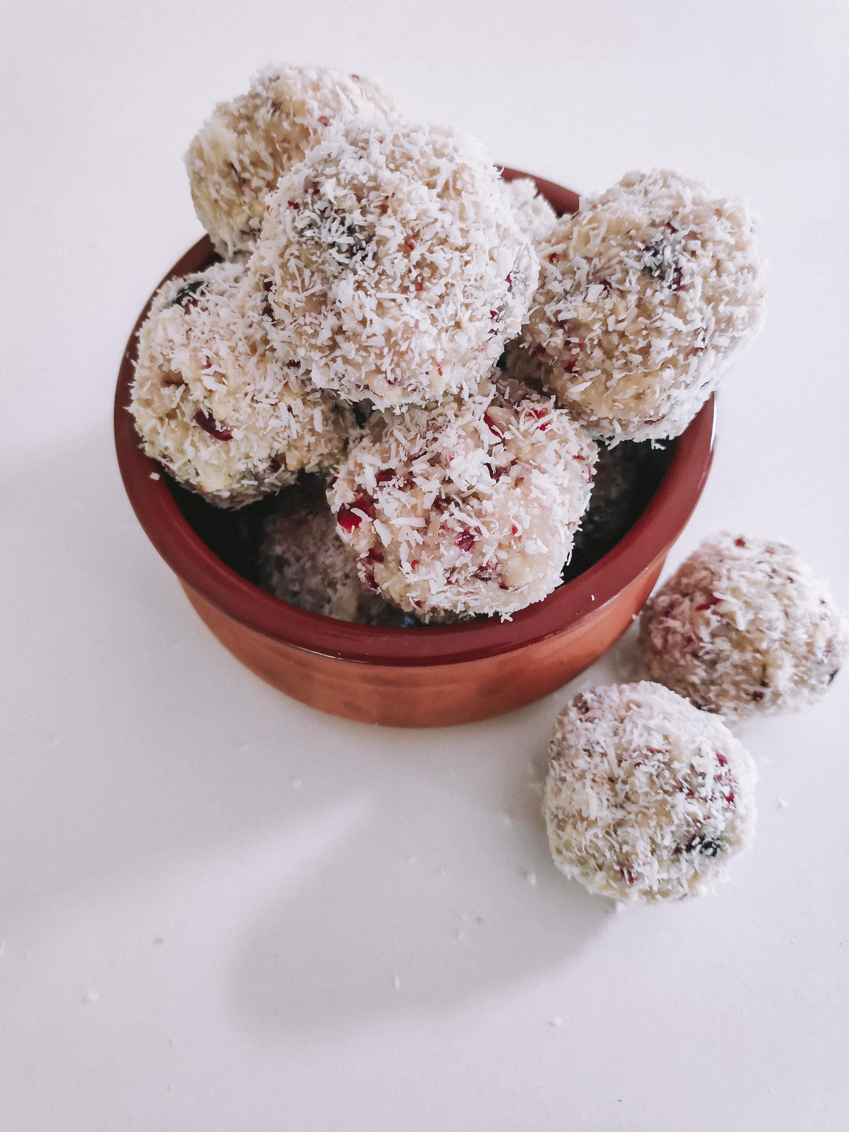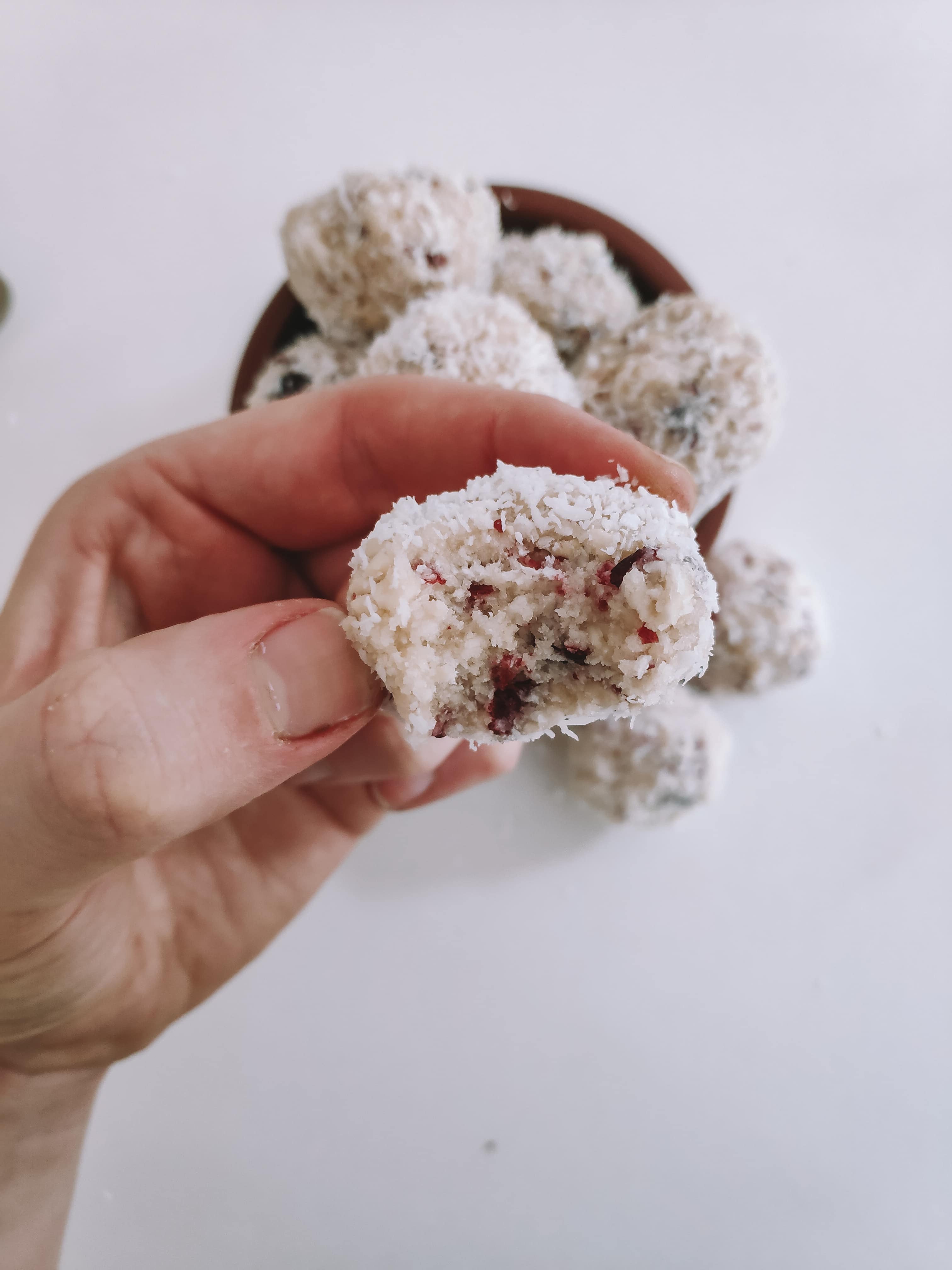 Although this recipe uses cashews as the base, you can't really taste the cashews (in my opinion). Instead, you're left with the sweet taste of cranberries and coconut. The added vanilla essence also serves to further enhance the flavour of these bliss balls.